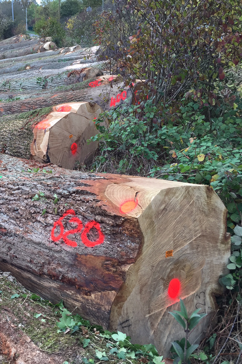 Au départ de la forêt : - Chêne : tranchage, merrains, plots & avivés, charpentes et traverses (ou débits grand export). - Frêne : tranchage, plot et sciages abc-bc pour l'export. - Châtaignier : tranchage, sciages menuiserie ou charpente.Devenir de nos produits commercialisés